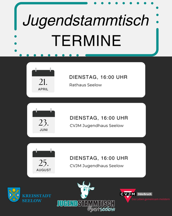 Dann bist du beim Jugendstammtisch richtig! Wir treffen uns alle 2 Monate und reden über das was du dir für Seelow wünschst.
